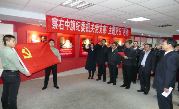察右中旗纪委机关党支部将“主题党日”活动与纪检干部队伍建设年活动结合起来,成为一种制度、一种常态。5月5日,机关支部组织全体党员在旗廉政警示教育基地开展了“常警示、学先进、树标杆”的主题党日活动。