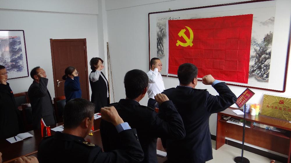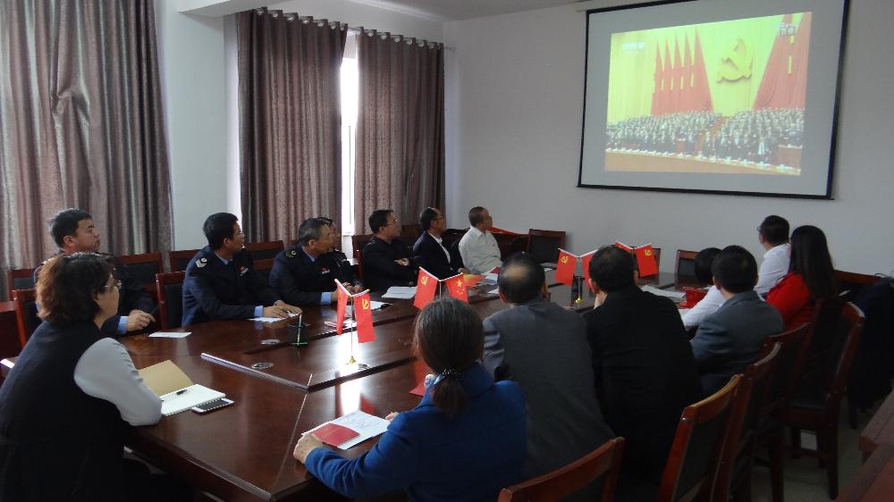 活动开始,全体党员干部面对党旗,重温入党誓词,学习党章、交纳党费。然后集体观看十九大开幕会,重新学习领悟习总书记的十九大报告。报告系统总结了过去五年党和国家事业取得的成就和发生的历史性变革,深刻阐述了新时代中国特色社会主义思想,提出了一系列符合当代中国实际的重大战略举措,是我们党迈向新时代、开启新征程、续写新篇章的政治宣言和行动纲领。