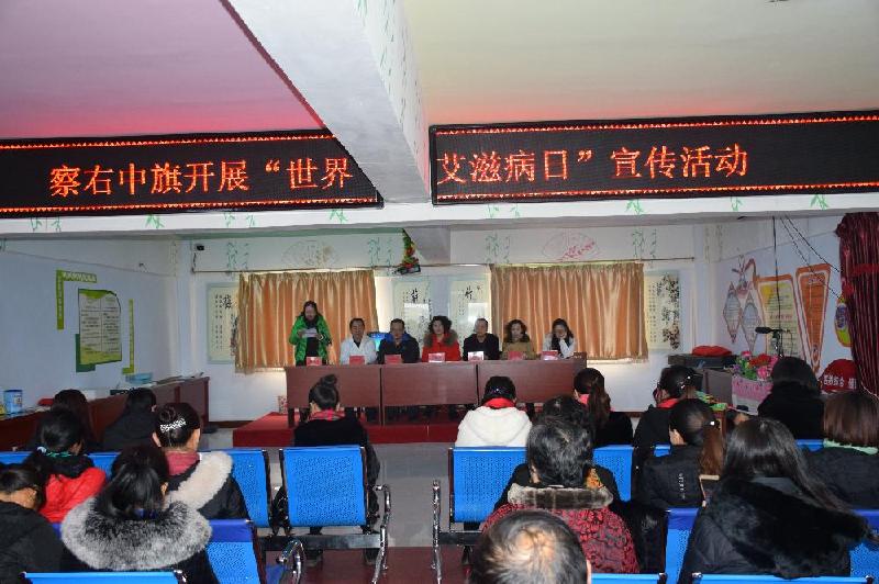 为认真贯彻落实党的十九大精神和推进健康中国建设的总体要求,全面实施《中国遏制与预防艾滋病“十三五”行动》,11月25日,察右中旗妇联在科布尔镇第一社区开展以“共担防艾责任,共享健康权利,共建健康中国”为主题的宣传活动。出席宣传活动的领导有旗卫计局副局长王建美、旗疾控中心主任武明霞,旗妇联副主席图雅、旗妇联副主席边咏芳、旗司法局律师高娃,来自各苏木乡镇的妇联主席、副主席及社区周边居民共50多人参加了活动。