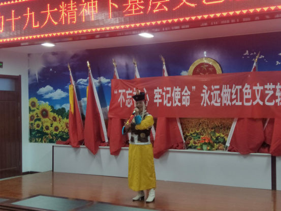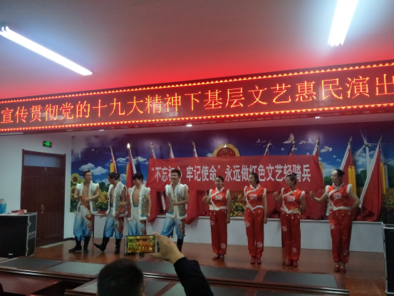 11月27日,为宣传贯彻党的十九大精神,活跃基层文化活动,乌兰牧骑艺术团演职人员为土城子乡全体干部、书记和主任送上了精彩的文艺节目,文艺节目采用快板、舞蹈、歌曲、三句半等不同的艺术形式,表演了以党的十九大精神为主要内容的节目。
