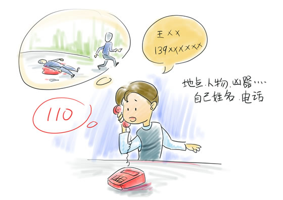 应急要点>>> ●发现斗殴、盗窃、抢劫、强奸、杀人等刑事、治安案(事)件时,应立即报警。若情况紧急,无法及时报警,则应在制服犯罪嫌疑人或脱离险情后,迅速报警。