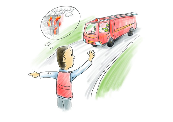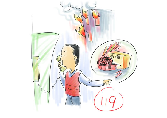 应急要点>>> ●拨打119时必须准确报出失火方位。如果不知道失火地点名称,说清楚周围明显的标志。